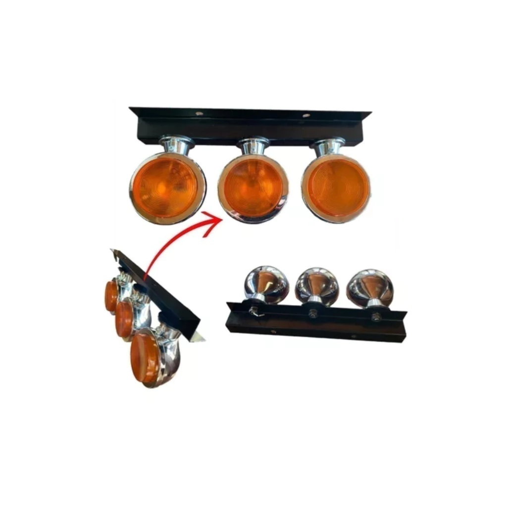 CONJUNTO DE 3 LANTERNAS BOJUDA FOGUINHO CROMADA EM ABS LENTE ALTA RAIADA SOQUETE CANECA AMBAR